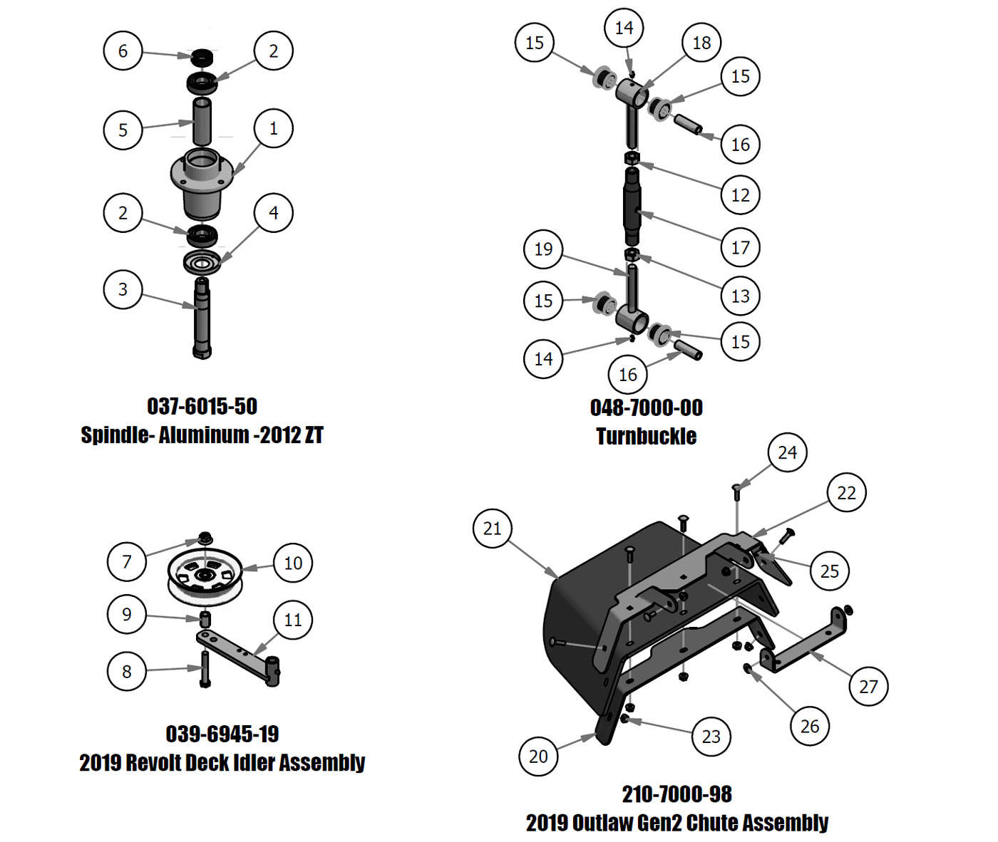 Spindle, Deck Idler, Turnbuckle, Chute Assembly